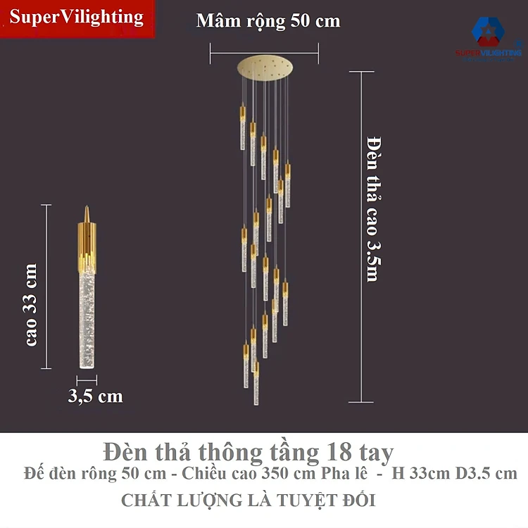 Đèn thả thông tầng pha lê SuperVilighting trang trí cầu thang đèn chùm thả trần bảo hành 24 tháng