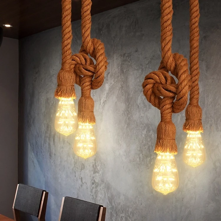 Đèn thả trần dây thừng 2m, 2 đuôi đèn (Không bóng đèn)