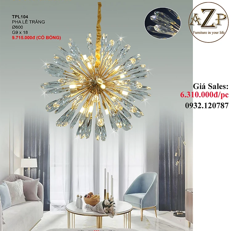 ĐÈN THẢ TRẦN PHA LÊ / ĐÈN THÔNG TẦNG TRANG TRÍ PHÒNG KHÁCH / PHÒNG NGỦ / CẦU THANG / KHÔNG GIAN SANG TRỌNG AZP-104 phong cách đương đại, hàng nhập khẩu AZP