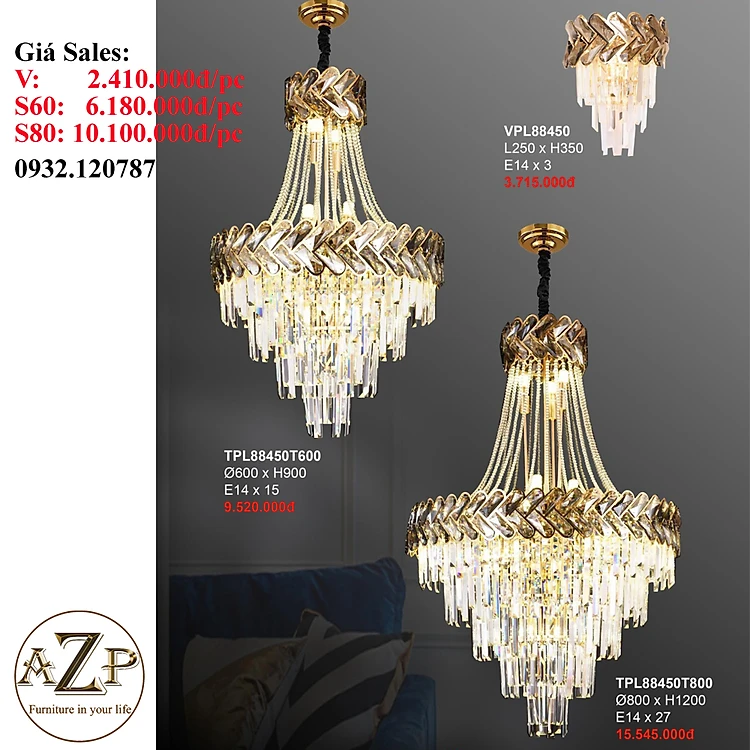 ĐÈN THẢ TRẦN PHA LÊ / ĐÈN THÔNG TẦNG TRANG TRÍ PHÒNG KHÁCH / PHÒNG NGỦ / CẦU THANG / KHÔNG GIAN SANG TRỌNG AZP-88450 phong cách đương đại, hàng nhập khẩu AZP