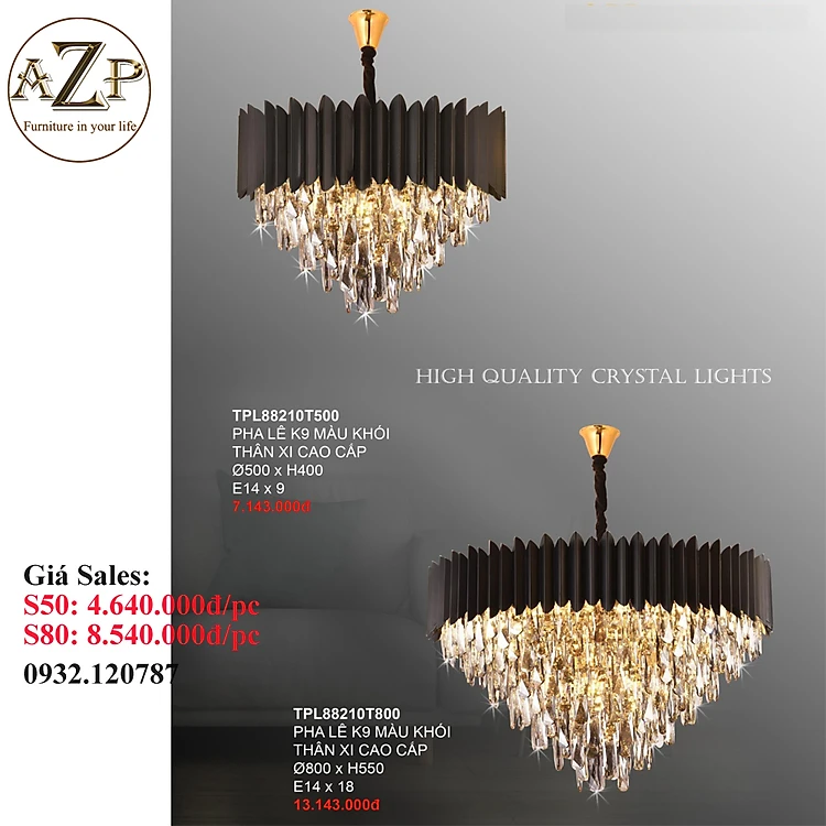 ĐÈN THẢ TRẦN PHA LÊ / ĐÈN THÔNG TẦNG TRANG TRÍ PHÒNG KHÁCH / PHÒNG NGỦ / CẦU THANG / KHÔNG GIAN SANG TRỌNG AZP-88210 phong cách đương đại, hàng nhập khẩu AZP