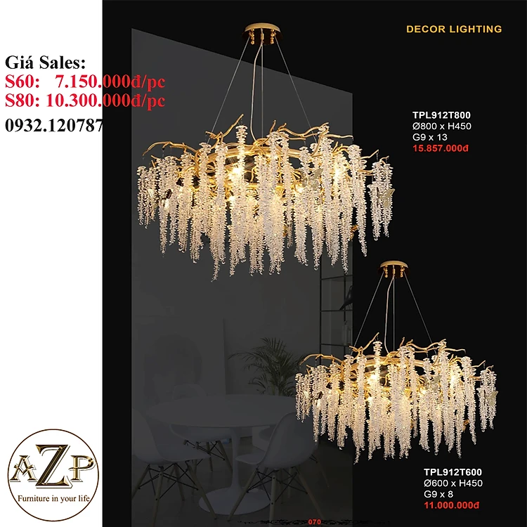 ĐÈN THẢ TRẦN PHA LÊ / ĐÈN THÔNG TẦNG TRANG TRÍ PHÒNG KHÁCH / PHÒNG NGỦ / CẦU THANG / KHÔNG GIAN SANG TRỌNG AZP-912 phong cách đương đại, hàng nhập khẩu AZP
