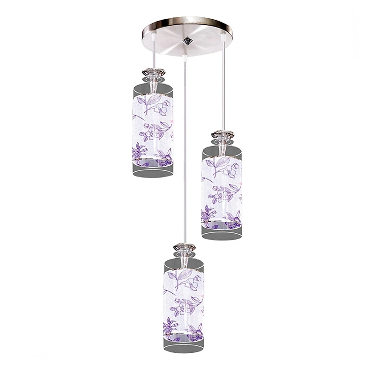 Đèn Thả Trang Trí Trần In Họa Tiết Netviet NB 383-3 thanh lịch với họa tiết hoa tím nhẹ nhàng, phù hợp với nhiều không gian nội thất. Đèn có ánh sáng dịu mắt, dễ chịu. Khung đèn cứng cáp, bền chắc nhờ gia công từ chất liệu inox không gỉ. Bạn cũng có thể thay thế bóng đèn sẵn có bằng các loại bóng đèn tiết kiệm điện thông dụng để giảm lượng điện năng tiêu thụ.
