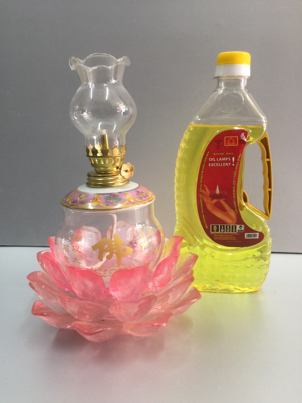Đèn thờ đốt dầu đế sen ( tặng 1 chai dầu 1 lít )