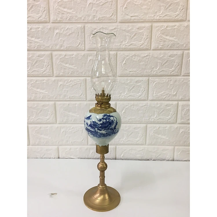 Đèn Thờ đốt dầu sứ bọc đồng Mã ll38