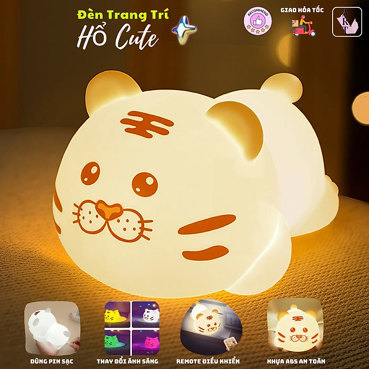 Đèn Trang Trí Hổ Tiger Nằm Đèn Ngủ Đổi Màu Quà Tặng_ Hàng chính hãng