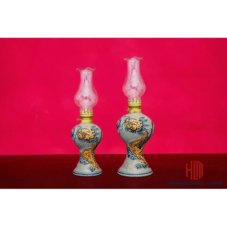 Đèn Váy Vai Tròn Men Rạn Đắp Nổi Họa Tiết Rồng
