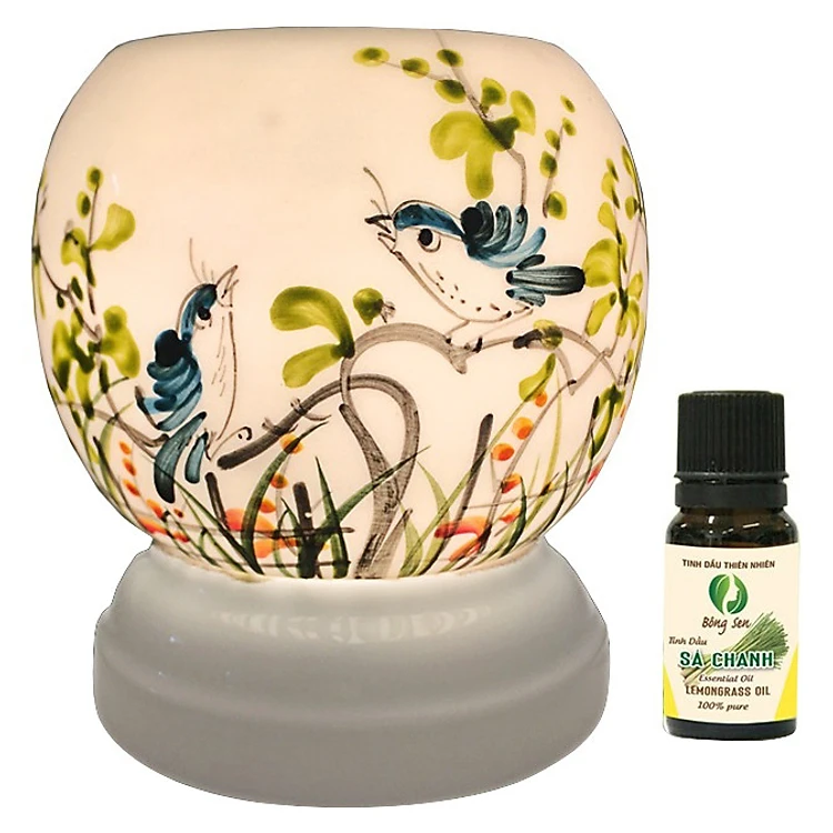Đèn Xông Tinh Dầu Gốm Bát Tràng Đôi Chim Xanh - Hàng Chính Hãng