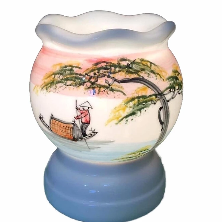 Đèn xông tinh dầu gốm bát tràng hoa vàng - giao màu ngẫu nhiên