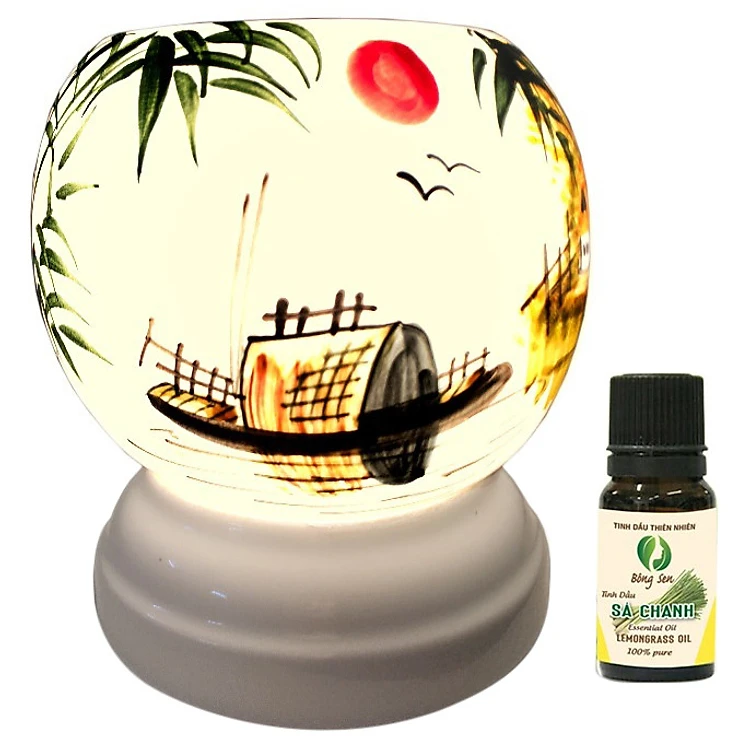 Đèn Xông Tinh Dầu Gốm Bát Tràng Phong Cảnh Thuyền - Hàng Chính Hãng