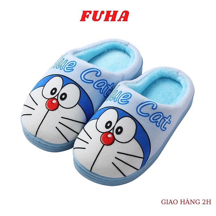 Dép bông trong nhà cho bé FUHA, dép lông mùa đông hình Doremon - Hello Kitty dễ thương