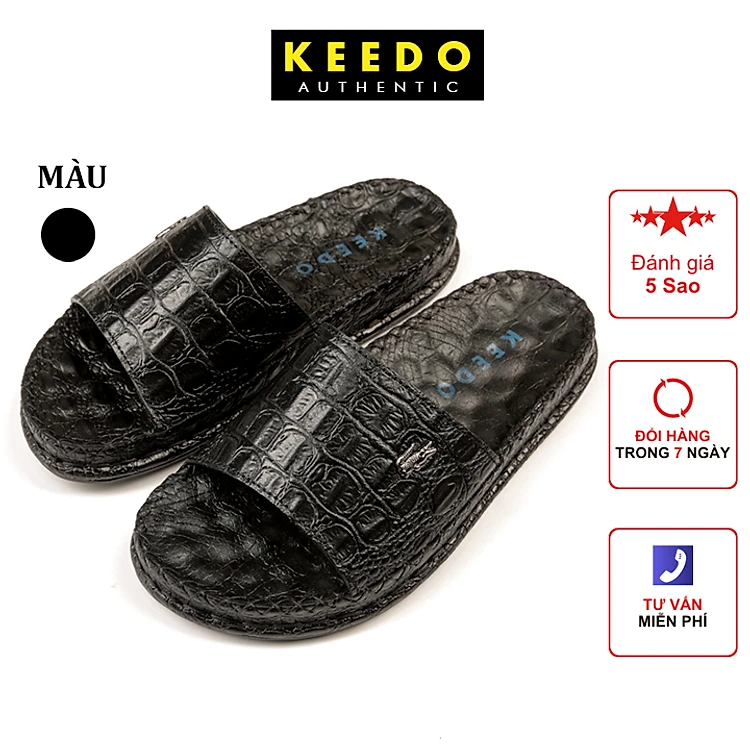 Dép da cá sấu quai ngang nam xịn full box KEEDO KDCS2