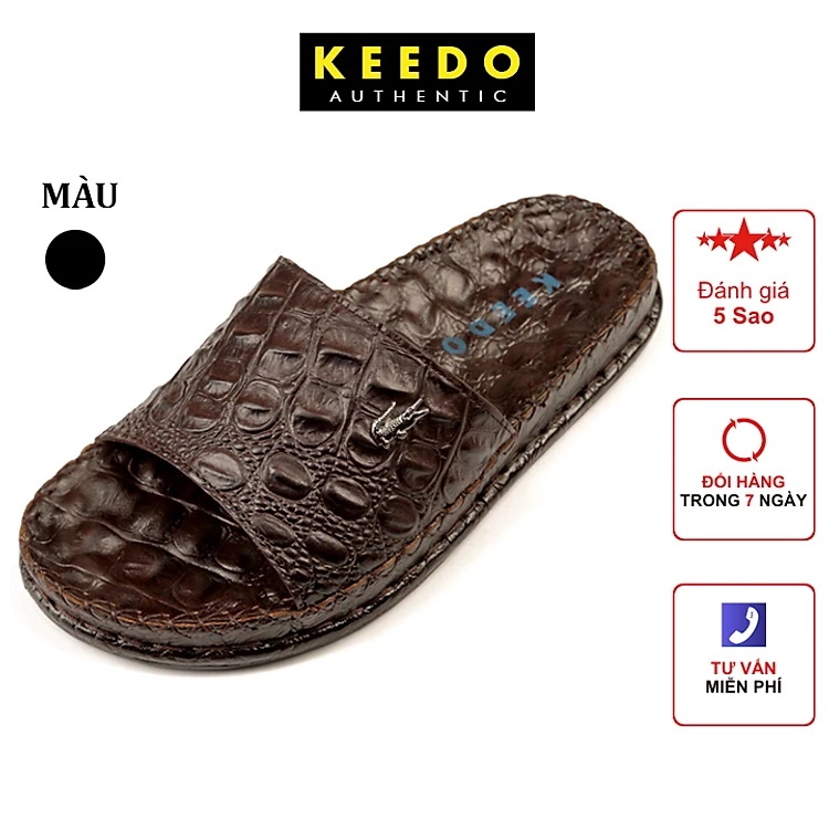 Dép da cá sấu quai ngang nam xịn full box KEEDO KDCS2