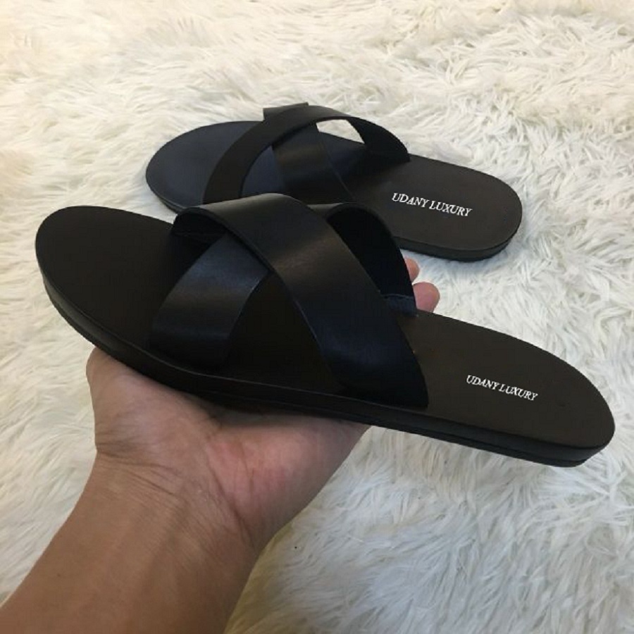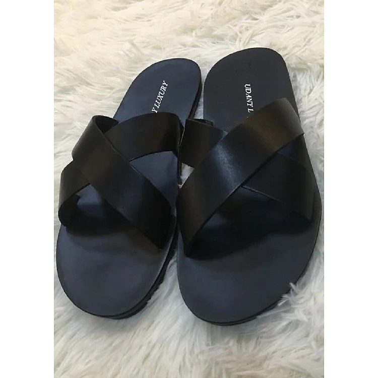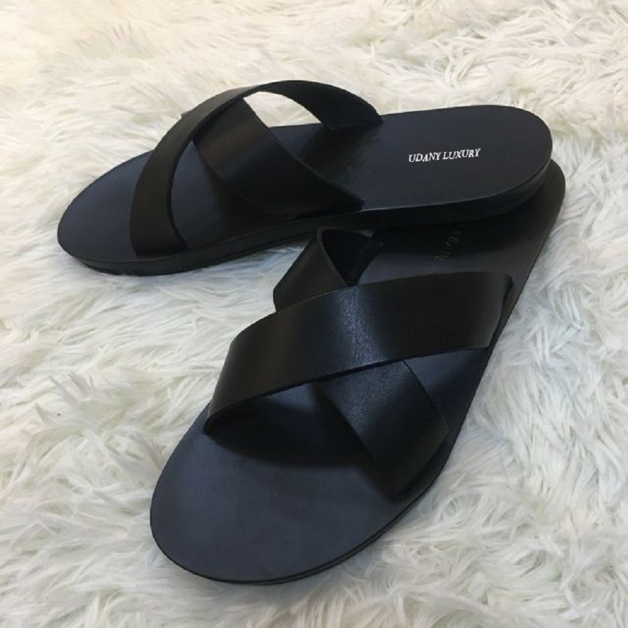 Dép Da Nam Da Bò Thật Cao Cấp UDANY - Dép Nam Quai Ngang Đẹp - DQN1