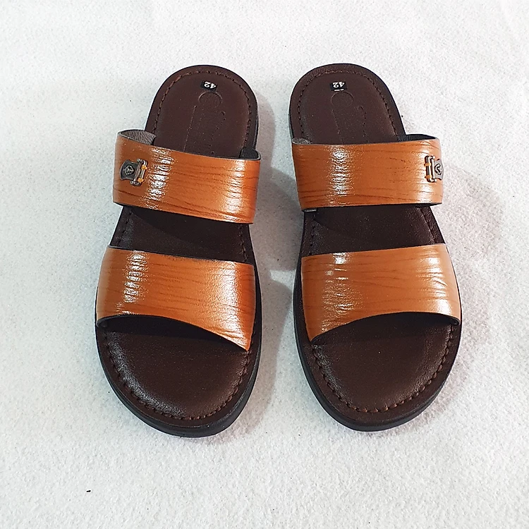 Dép da nam hai quai Trường Hải da bò thật 3 màu nâu,đen, vàng DN125MĐ