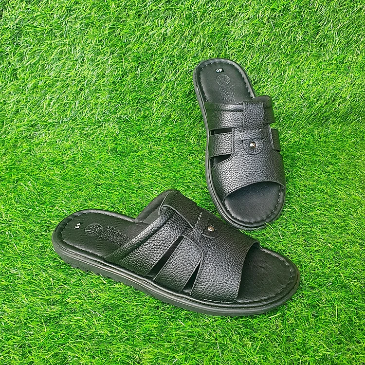 Dép da nam màu đen đế cao 3cm da bò Trường Hải DN141