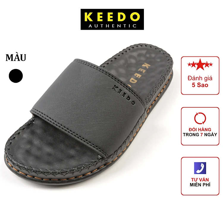 Dép da nam quai ngang cao cấp đế massage KEEDO KD0611