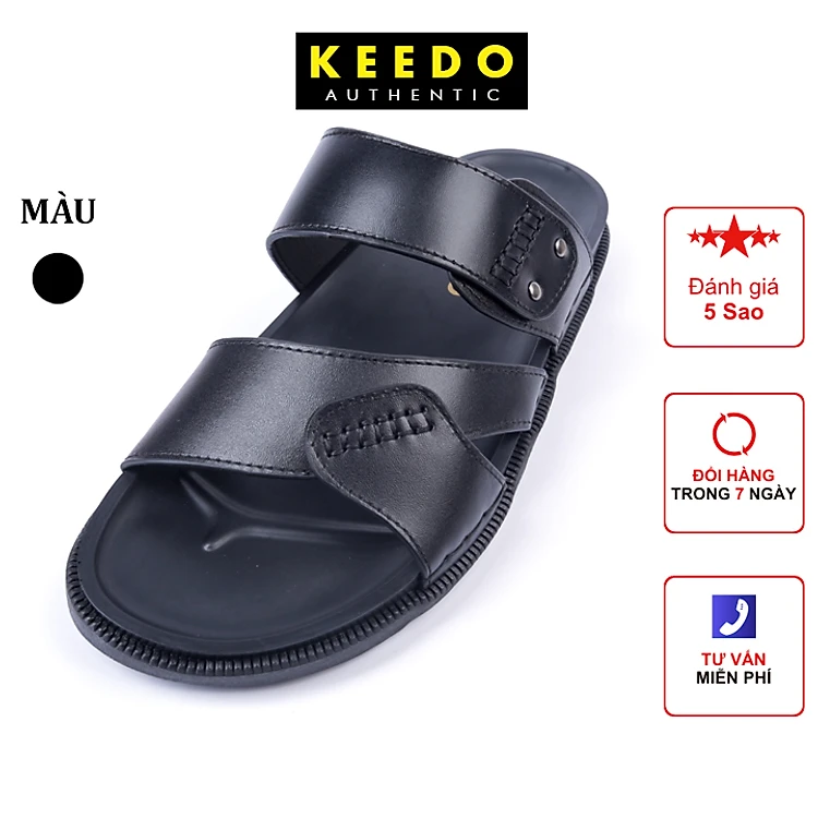 Dép da nam quai ngang cao cấp KEEDO BH01013
