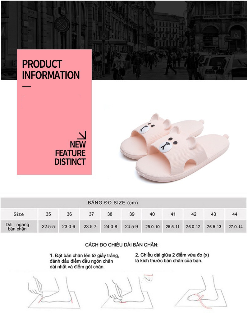 - Đế dép bằng cao su nhẹ êm chân, cao 1,5CM cùng thiết kế CHỐNG TRƠN TRƯỢT AN TOÀN.