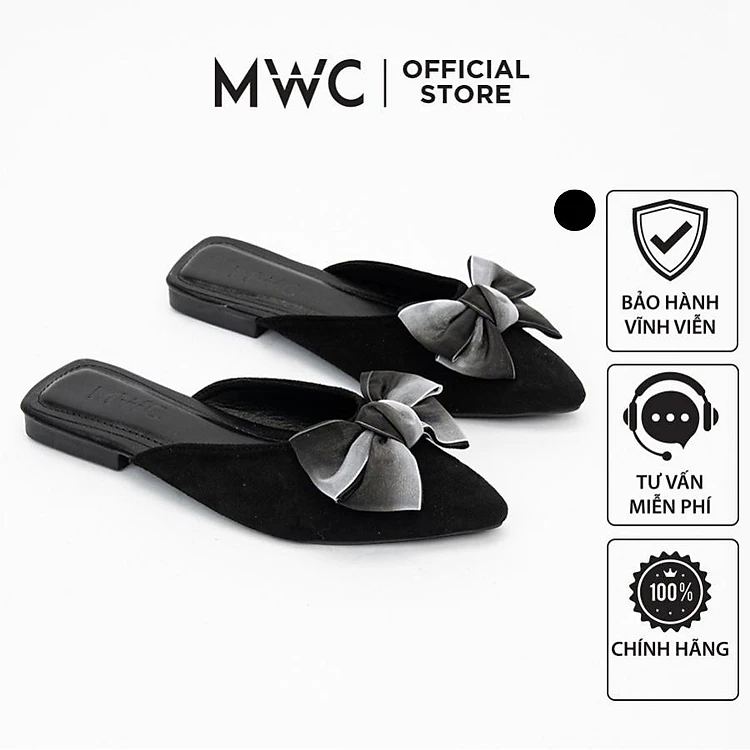 Dép MWC 8225 - Dép Sục Nữ Đế Bệt Mũi Nhọn Đính Nơ Cực Xinh
