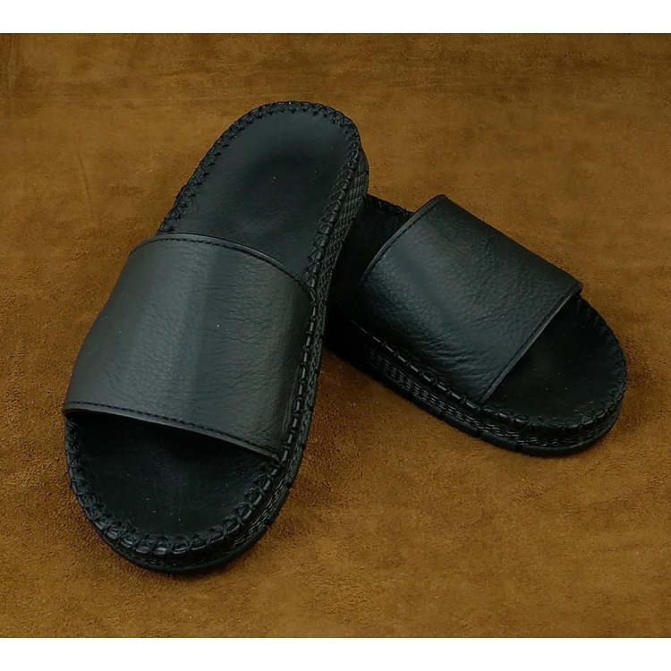 Dép Nam Da Bò Quai Ngang QN002 Phong Cách Đơn Giản Trẻ Trung Chống Trơn Trượt