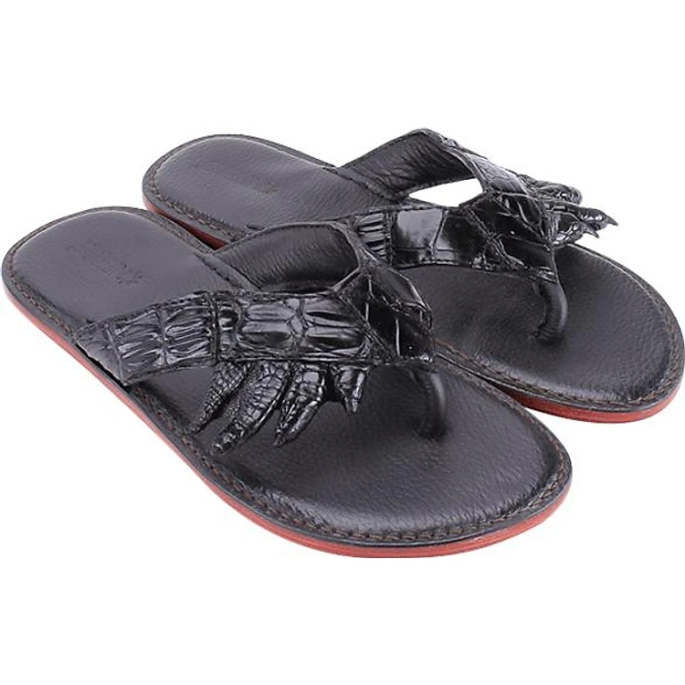 Dép Nam Da Cá Sấu Móng Tay Huy Hoàng HT7213 - Đen