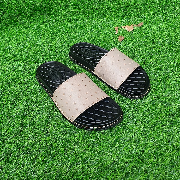 Dép nam một bản da bò Trường Hải 2 màu nâu, kem DN120
