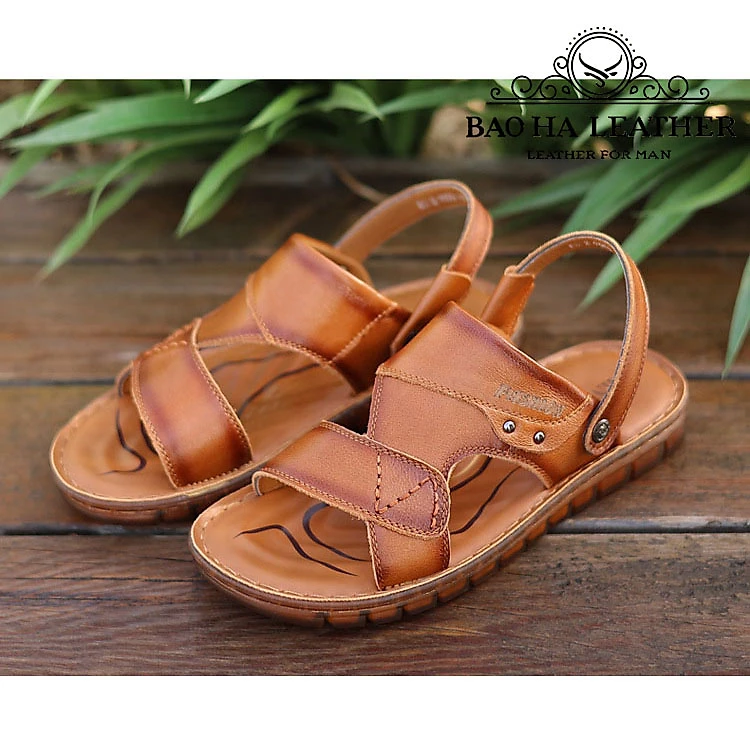 Dép nam quai hậu da bò thật BHD9808 Dép sandals nam quai ngang