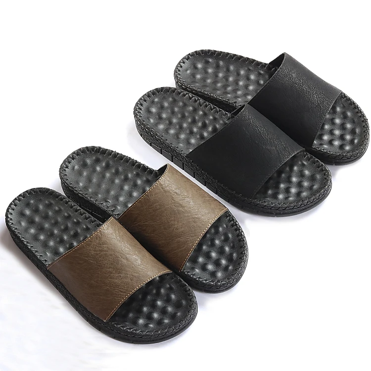 Dép Nam Quai Ngang Bảo Hân, Kiểu Dáng Thanh Lịch, 2 Màu Đen,Nâu, Slipper Đế Bằng Khâu Đế Mã DE09.