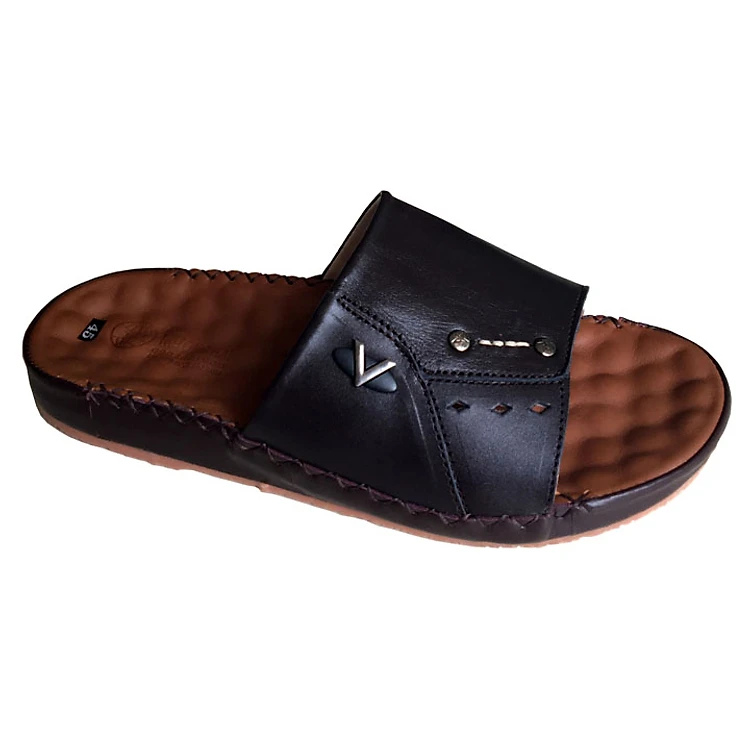 Dép nam quai ngang BIGSIZE Trường Hải da bò thật mềm mại may thủ công chắc chắn tỉ mỉ đế kếp không trơn QNN0119