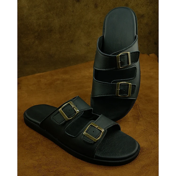 Dép Nam Quai Ngang Da Bò 2 Quai Khóa Đồng Sang Trọng Phong Cách Trẻ Trung Tiện Lợi Êm Chân (có bán sỉ)