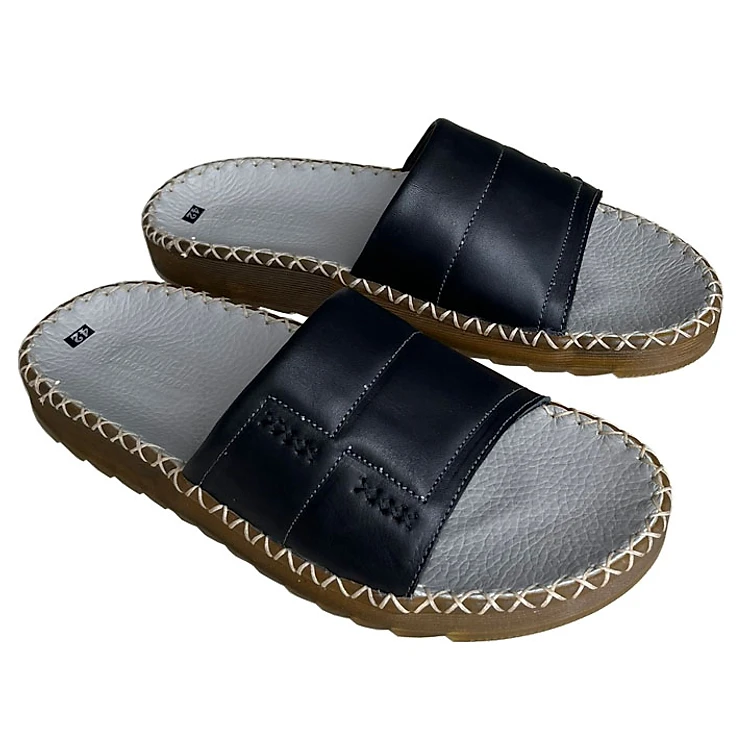 Dép nam quai ngang da bò đế doctor cao 2.5cm màu đen Trường Hải DN01-125