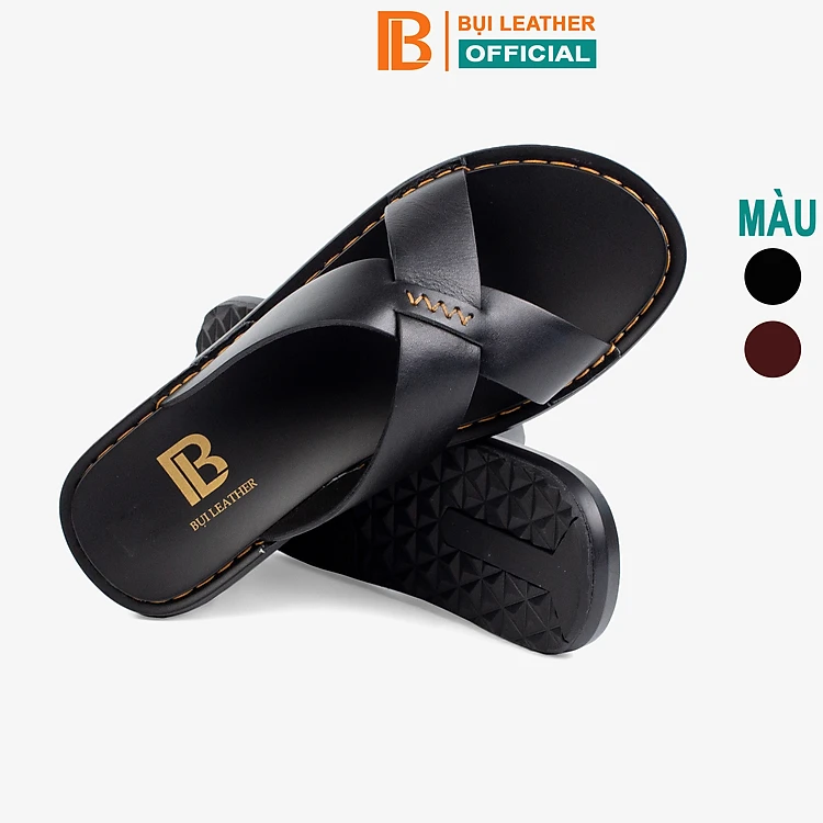 Dép nam quai ngang da bò Nappa cao cấp Bụi Leather E103, đế đúc nguyên khối khâu viền thủ công đi êm chân, Bảo hành 12 Tháng