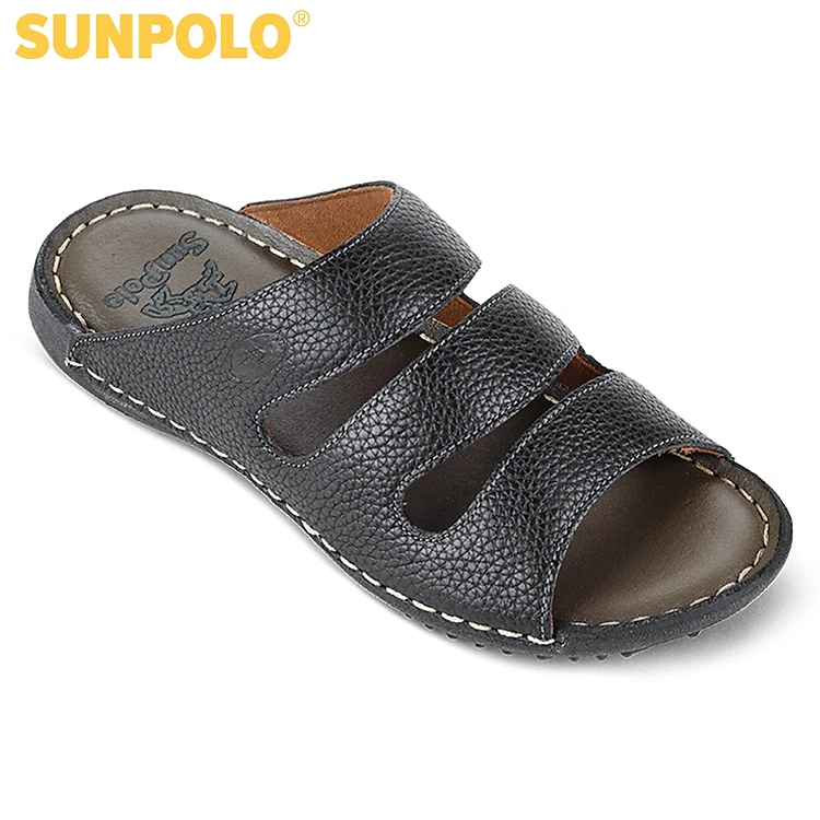 Dép Nam Quai Ngang Da Bò SUNPOLO SUD19D - Đen