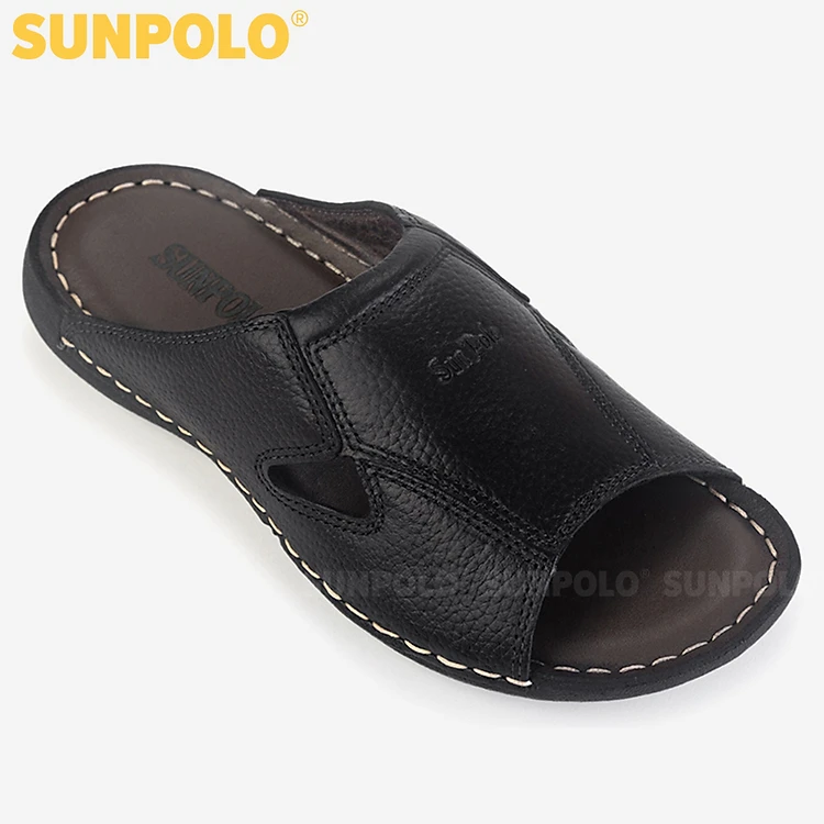 Dép nam quai ngang da bò đế cao su DQN020 phiên bản đen