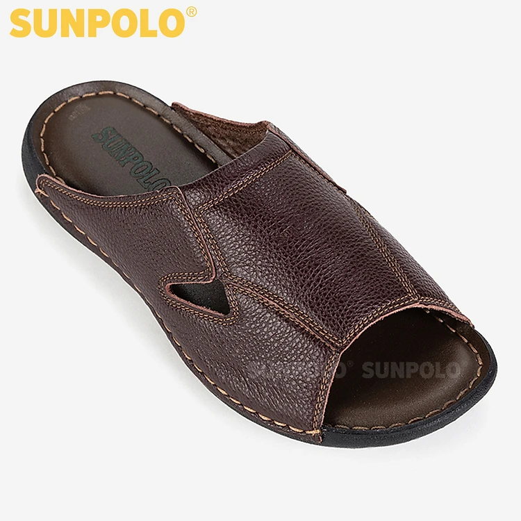 Dép Nam Quai Ngang Da Bò SUNPOLO SUD20N - Nâu