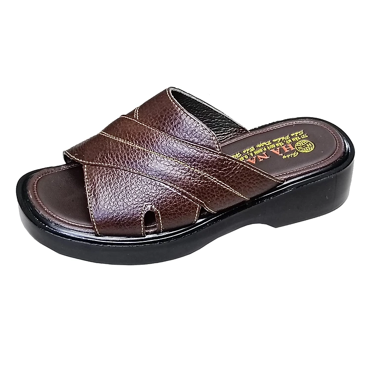 Dép Nam Quai Ngang Da Bò Thật HÀ NAM Đế Cao Dành Cho Người Thấp DN2041