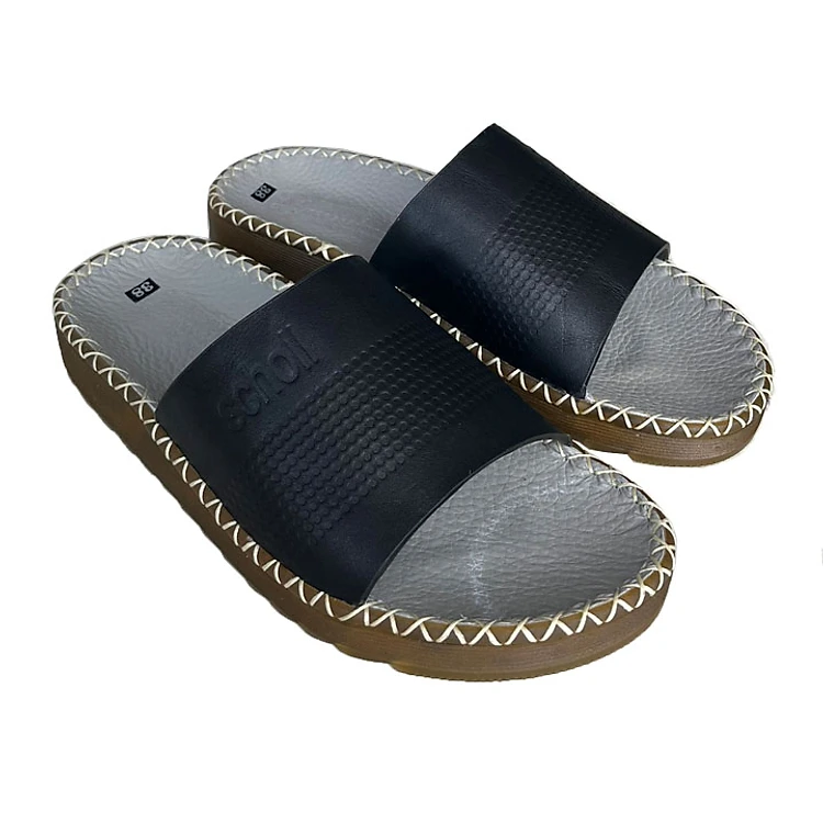 Dép nam quai ngang đế doctor cao 2.5cm may viền da bò Trường Hải hai màu đen, nâu DN01-126