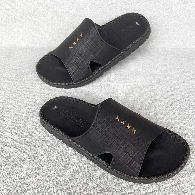 Dép nam quai ngang đế kếp 2cm may viền Trường Hải 2 màu nâu, đen DC140