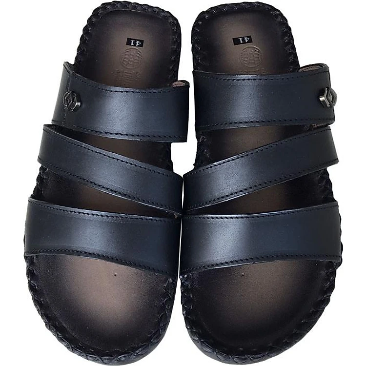 Dép nam quai ngang TRƯỜNG HẢI đế âm ba quai da bò thật mặt đế cao su chống mòn không trơn THQN499