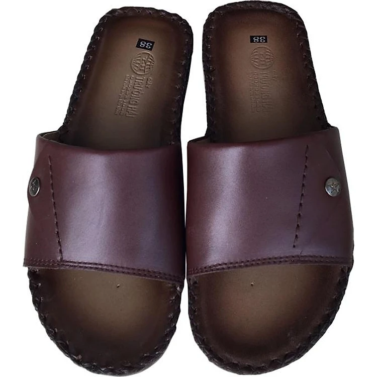 Dép nam quai ngang TRƯỜNG HẢI một bản da bò thật đế âm may viền thủ công chắc chắn tỉ mỉ mặt đế cao su chống mòn không trơn QNTH074 - Nâu - 44