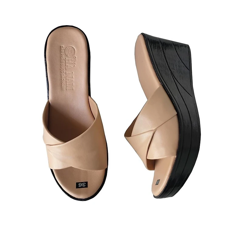 Dép Nữ Quai Ngang Đế Xuồng Da Bò Thật TiTi ĐÔ Cao Cấp 7cm DNU2116d