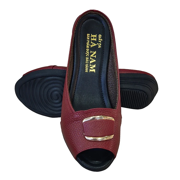 Dép Dữ Quai Ngang Đế Xuồng Da Bò Thật TiTi ĐÔ Cao Cấp 4cm DNU2094d