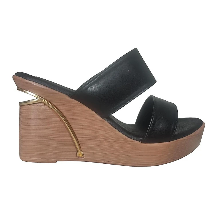 Dép Nữ Quai Ngang Đế Xuồng Da Bò Thật TiTi ĐÔ Cao Cấp 9cm DNU2022d