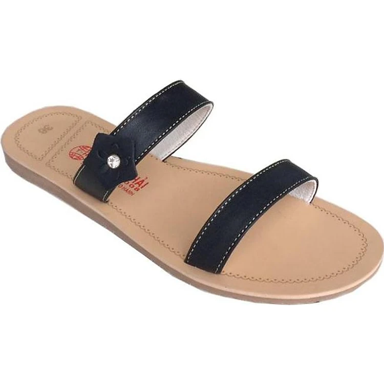 Dép nữ quai ngang Trường Hải 2 quai da bò mềm mại không nổ da đế đúc không trơn QNN0157