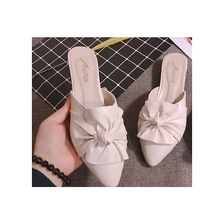 Dép Nữ Sục Da Phối Nơ Xoắn 3p