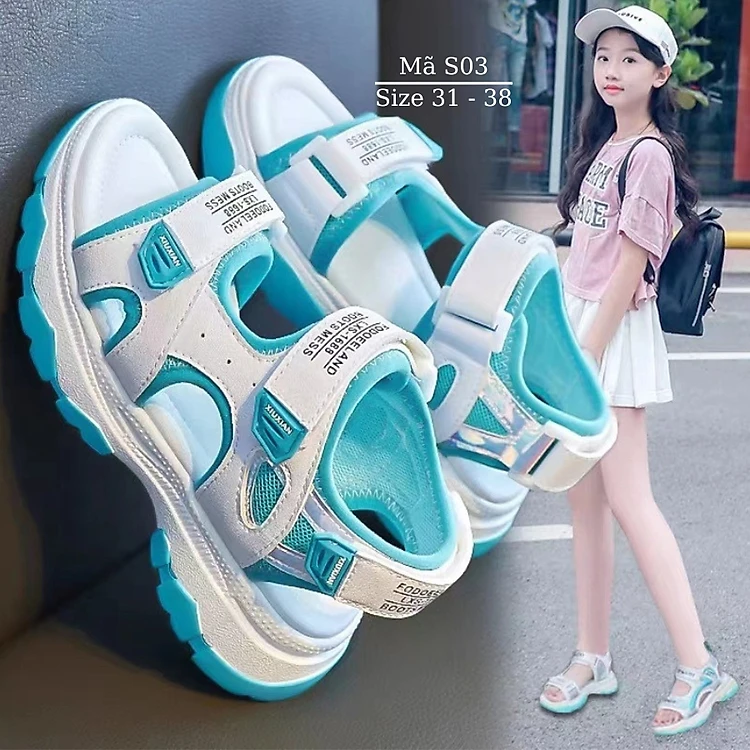 Dép Quai Hậu Bé Gái 6 - 12 tuổi NHÍM SHOP màu trắng xanh quai ngang dáng thể thao êm chân chống trượt phù hợp trẻ em học sinh đi học, dạo phố, đi biển mùa hè S03