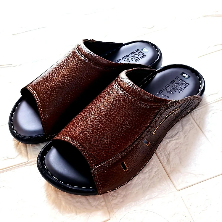 Dép quai ngang nam da bò 100%, quai da bò cao cấp 02 lớp da dày, mềm mại, đế cao su đi rất êm chân