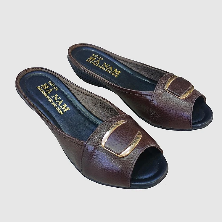 Dép Nữ Quai Ngang Đế Xuồng Da Bò Thật TiTi ĐÔ Cao Cấp DNU2095d