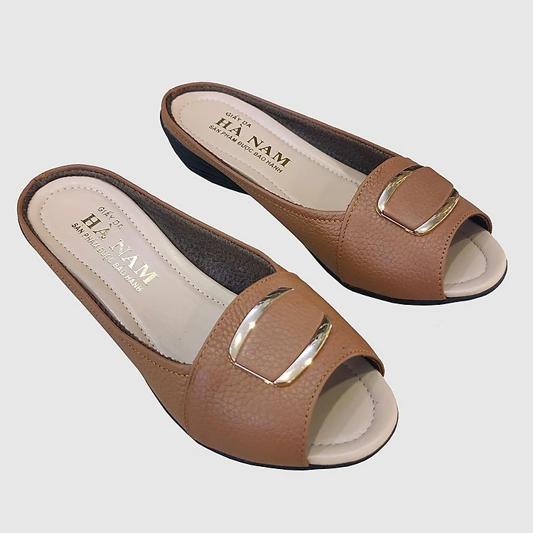 Dép Nữ Quai Ngang Đế Xuồng Da Bò Thật TiTi ĐÔ Cao Cấp DNU2097d